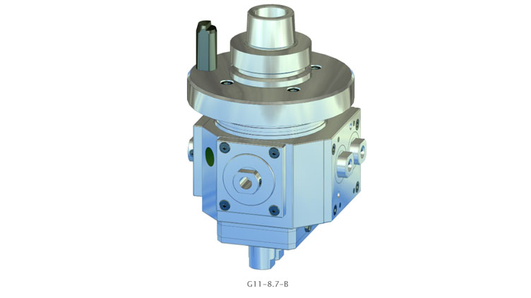 此處給出的型號名稱 G11-8.7-B 表示帶有 7 個鉆架和一個中間主軸的角鉆頭。