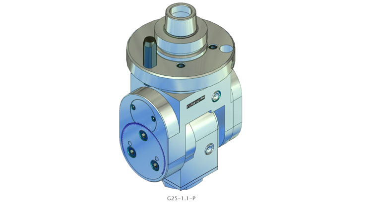 G25系列的角頭具有可根據(jù)刻度進(jìn)行無級(jí)調(diào)整的加工主軸。設(shè)置范圍從 0°(垂直)擴(kuò)展到兩側(cè)最大 100°。主軸的旋轉(zhuǎn)方向與驅(qū)動(dòng)器的旋轉(zhuǎn)方向相反。